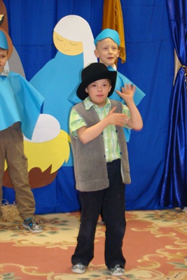 Występ połączony był z jasełkami, więc Patryczek został przebrany za pasterza... Jego głównym zadaniem było siedzenie przy ognisku, niby nic trudnego, ale nie dla Patryka... Na początku chwilę siedział, ale jak tylko zaczęły się piosenki już był na środku sceny.